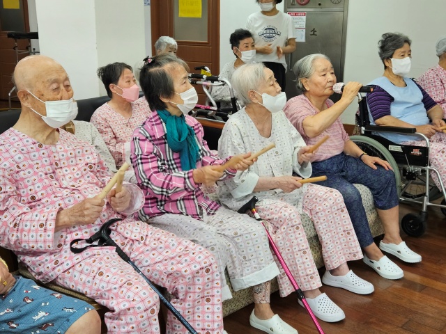 그랜드자연요양병원의 다양한 음악요법 프로그램 중 어르신들이 선호하는 음악활동은 노래부르기(기억 속에 잔존하고 있는 노래를 생각나게 하고 가사를 통해 문자의 기억을 되살려 언어능력의 회복을 기대할 수 있다)이다.